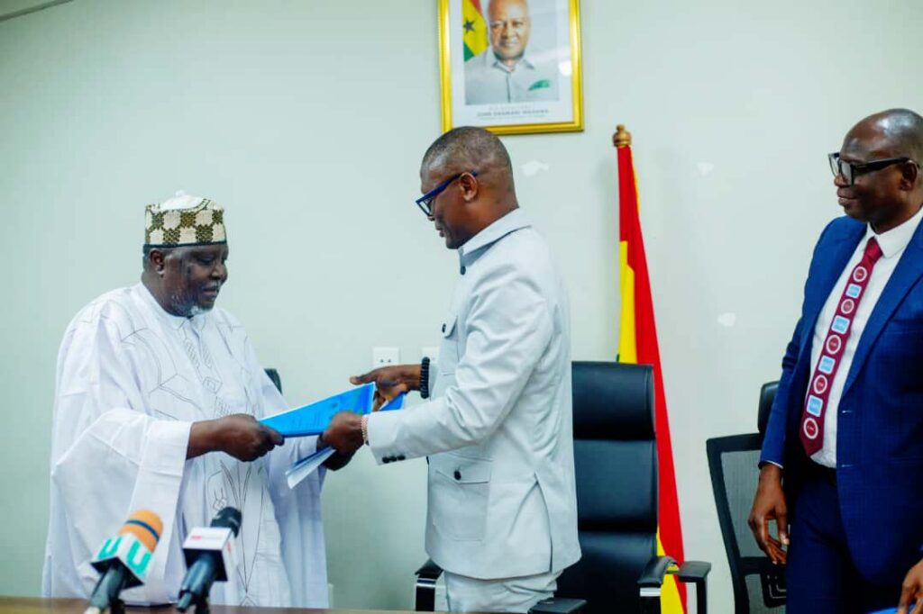 Signing of the MoU – Hon. Kofi Iddie Adam, Minister of Sports and Recreation (Left) , Bawah Fuseini – President, Ghana Athletics (Right)
