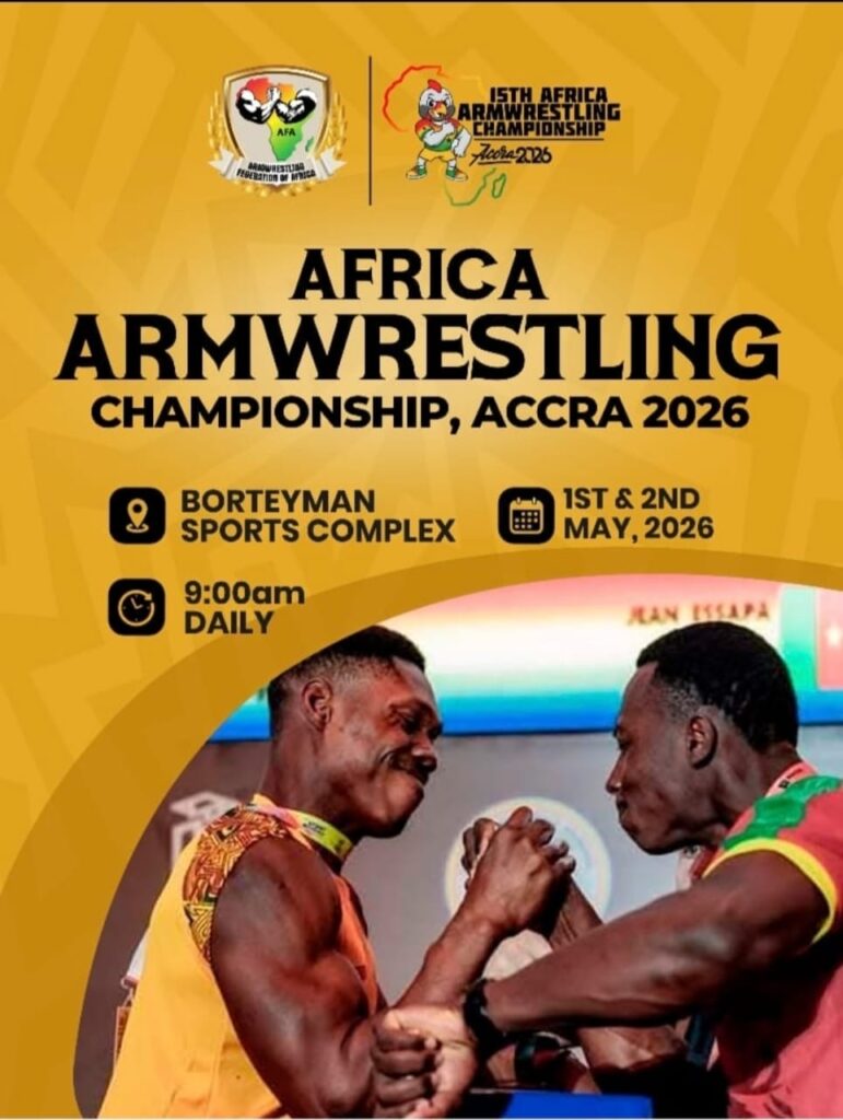 ACCRA, GHANA – The sportlight for the followers of World and Africa Armwrestling will be on Accra, Ghana as about 350 pullers representing 21 national teams from across the continent have begun arriving for the high-stakes 15th Africa Armwrestling Championship.